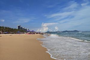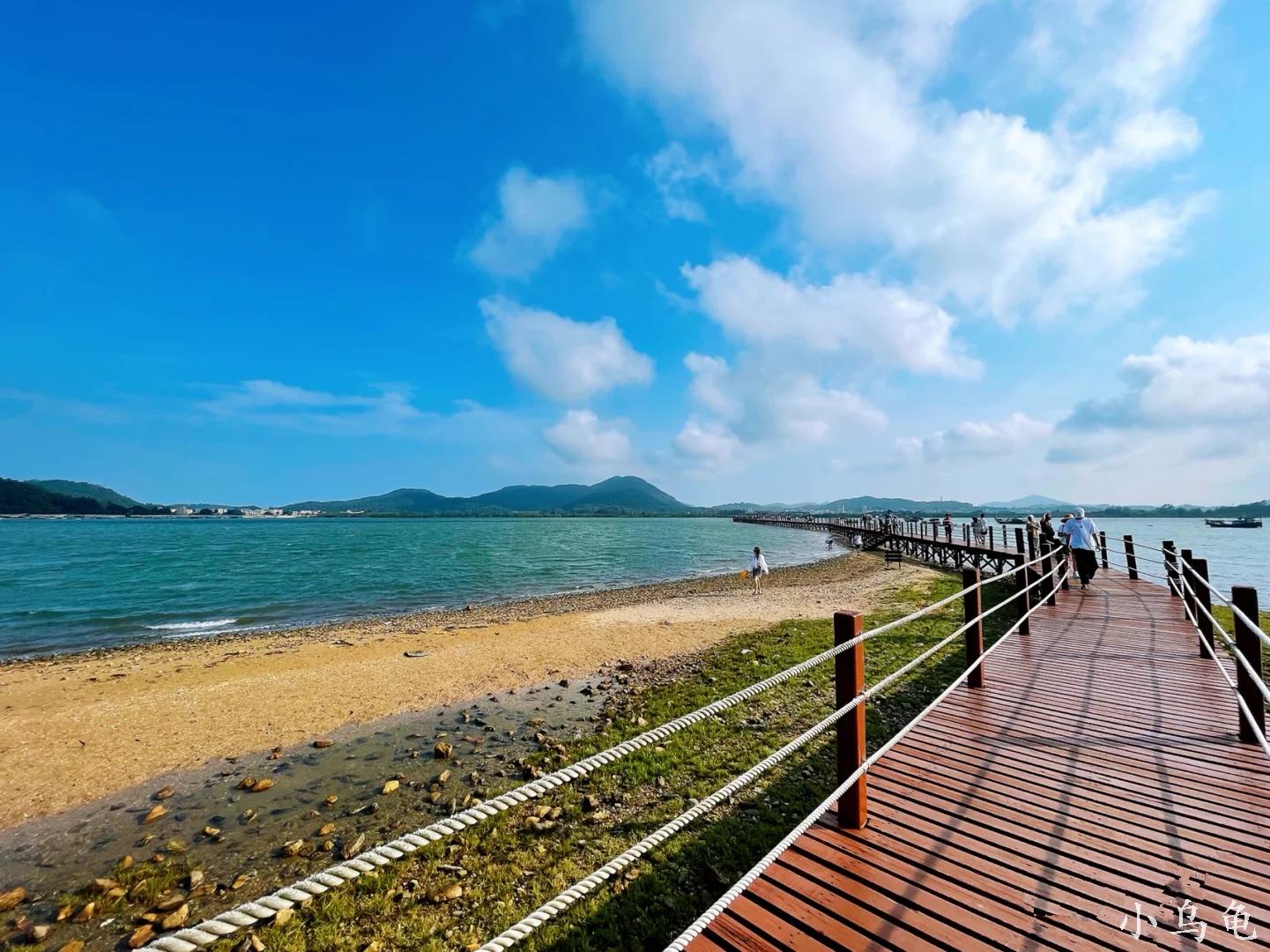海陵岛最早开发的海域,拥有2.45公里长的沙滩,海水湛蓝,沙质洁净,适合进行日光浴、海水浴和沙浴。这里还有我国最大的临海放生台——南海放生台